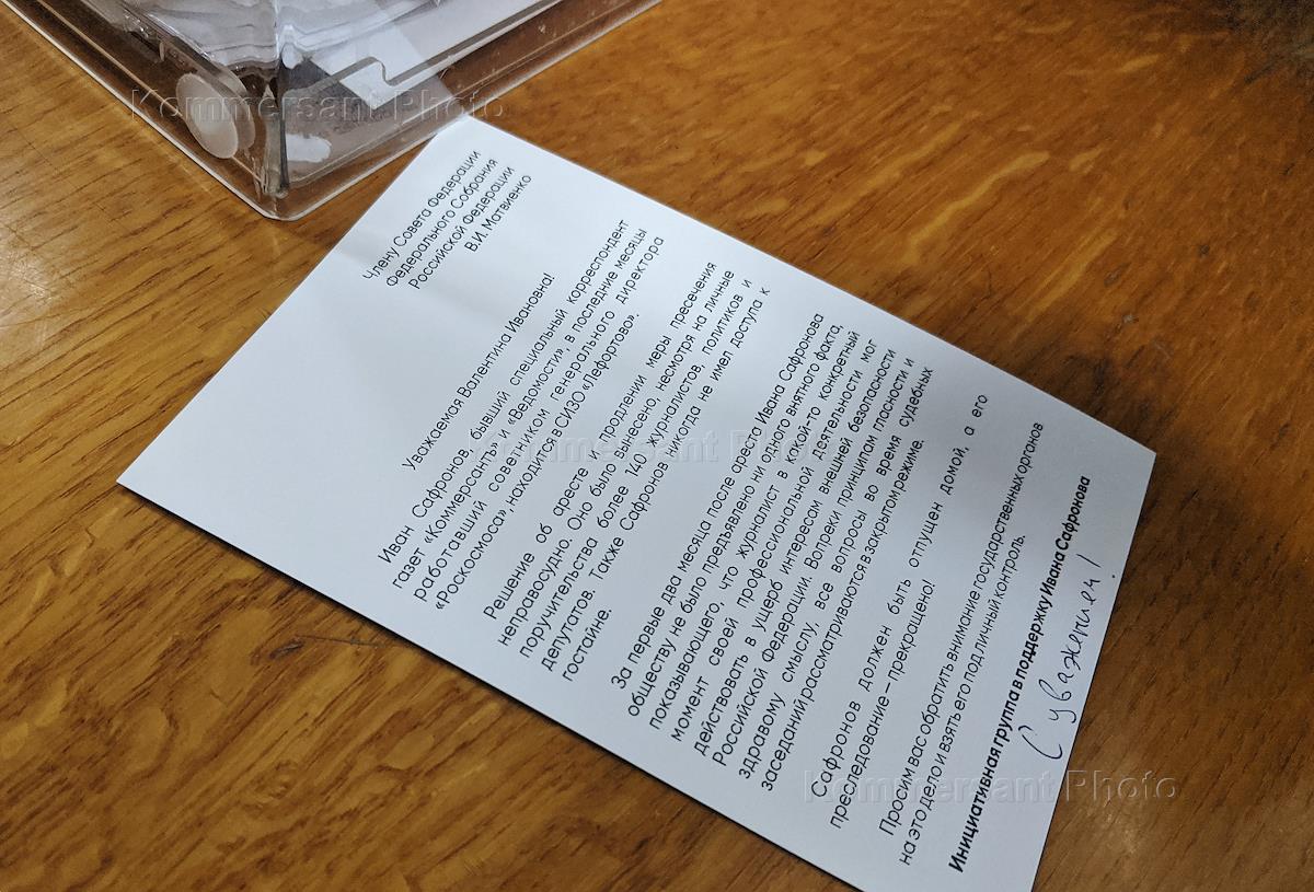 Общество Подача обращений в Государственную думу России в поддержку советника генерального директора "Роскосмоса" по информационной политике, бывшего журналиста газеты "Коммерсантъ" Ивана Сафронова.