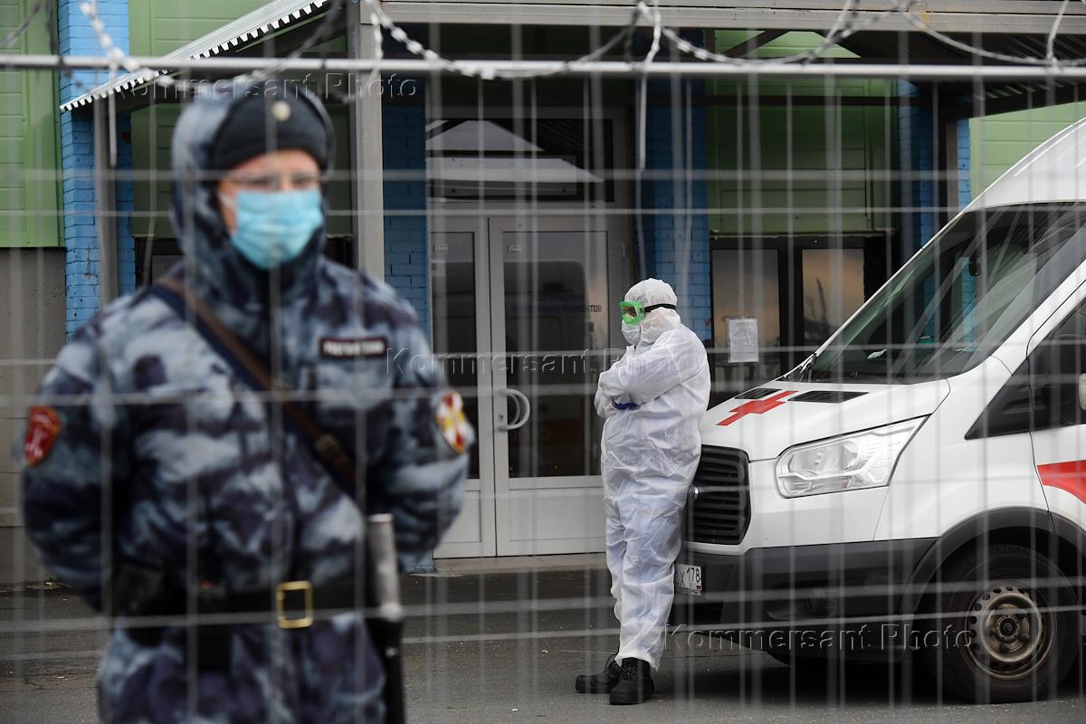 Работа временного госпиталя для коронавирусных больных в павильоне №5 "Ленэкспо". Машины скорой…