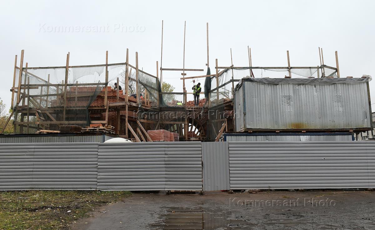 Виды Санкт-Петербурга. Поврежденный памятник архитектуры Александровские ворота на берегу реки Охта.…