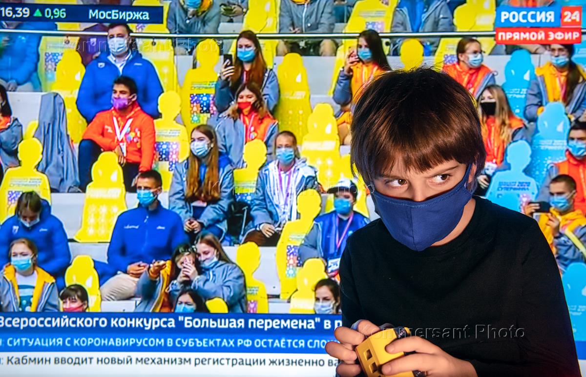 Политика Жанровая фотография. Президент России Владимир Путин встретился в режиме видеоконференции с финалистами конкурса "Большая перемена", который проходит в международном детском центре "Артек" в Крыму.