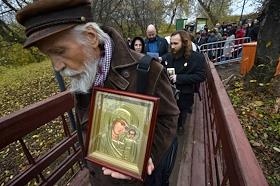 Акция православных националистов против масок и чипирования у храма Казанской Божьей матери в Коломенском.