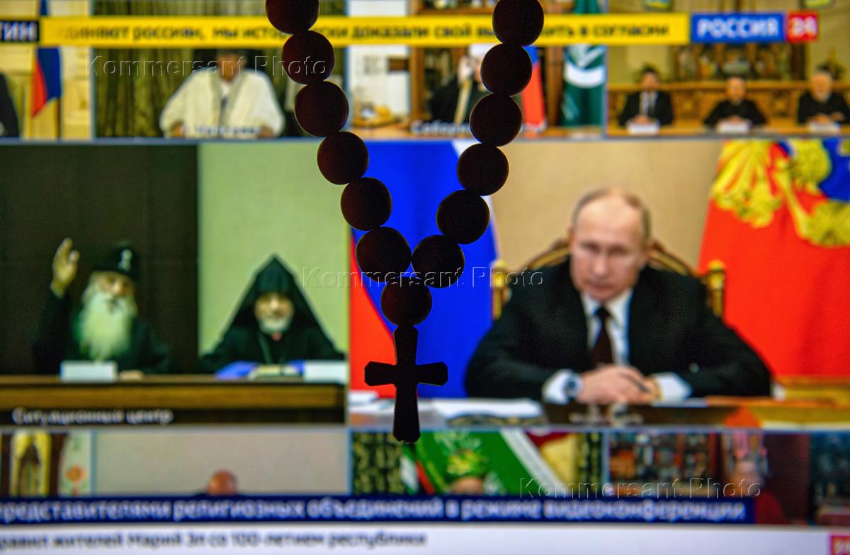 Трансляция встречи в формате видеоконференции президента России Владимира Путина с представителями…