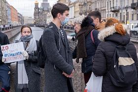 Жанровая фотография. Участница одиночного пикета на Казанском мосту.