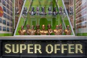 Жанровая фотография. Сувенирные бюсты Путина, Ленина и Пушкина в витрине магазина.