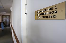 Табличка с надписью "Помещение с повышенной опасностью" на двери в центральном узле Московской…