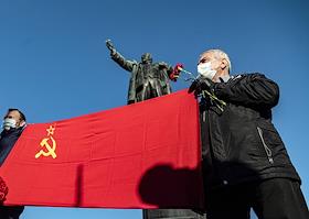 Общество Акция "Другой России Э.В.Лионова", Объединенной коммунистической партии (ОКБ), Российской коммунистической рабочей партии (РКРП) и "Рот-Фронт" у памятника Ленину рядом с Финляндским вокзалом в честь 103 годовщины Великой Октябрьской Революции.