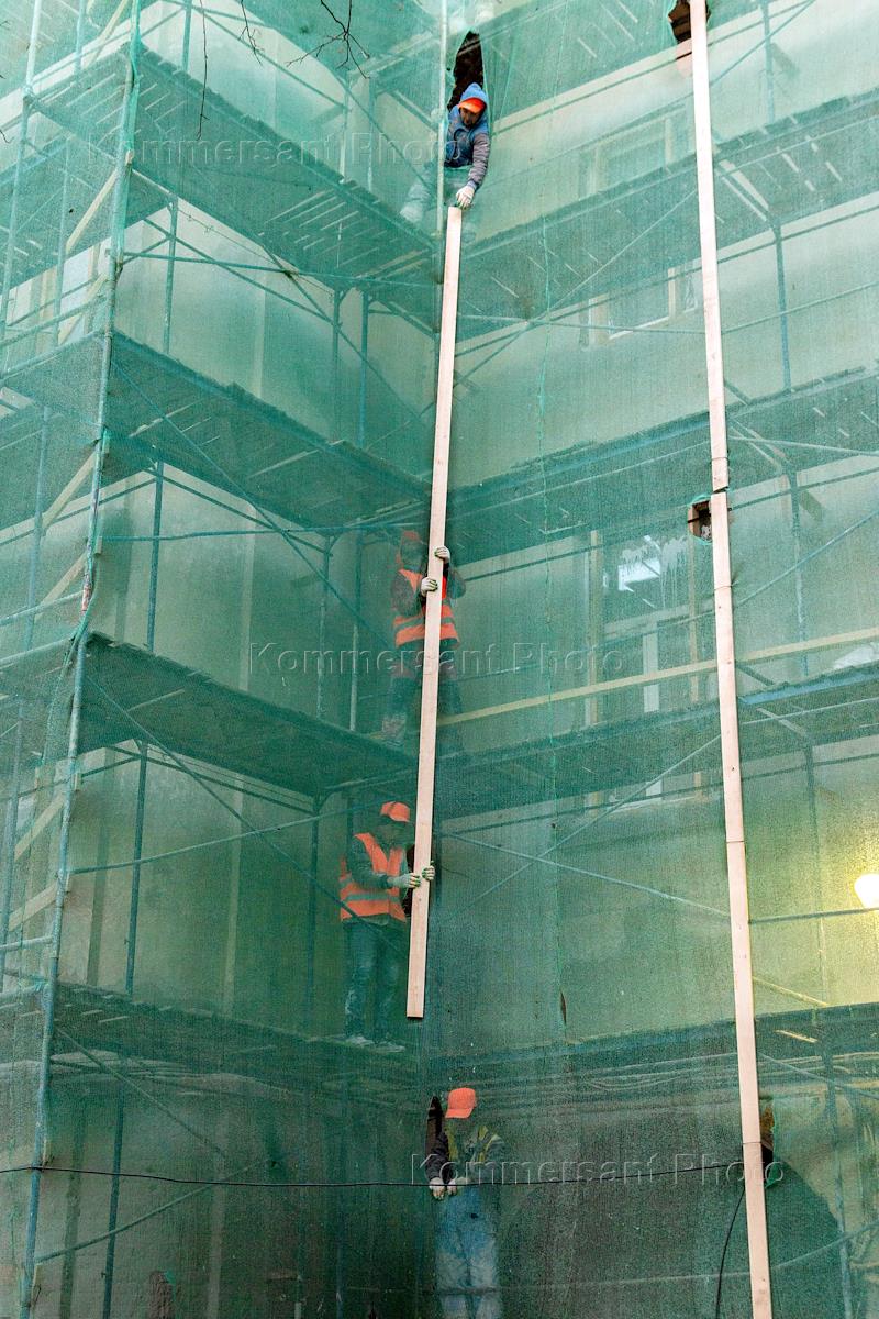 Виды Санкт-Петербурга. Жанровая фотография. Капитальный ремонт фасада жилого здания. Обустройство…