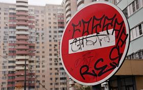 Недвижимость в поселке Трехгорка. Жанровая фотография. Дорожный знак "въезд запрещен" на фоне…