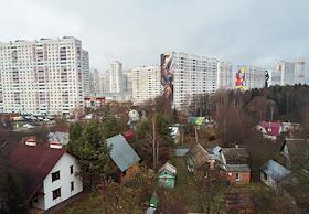 Виды поселка Трехгорка. Многоэтажные жилые дома и частный сектор.