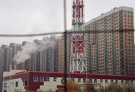 Недвижимость в поселке Трехгорка. Жанровая фотография. Дым из трубы на фоне многоэтажного жилого…