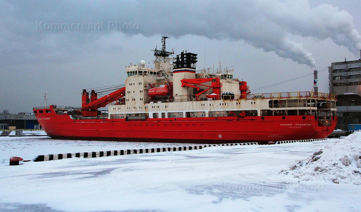 Научно-экспедиционное судно "Академик Трёшников" у причала Морского вокзала под погрузкой перед…