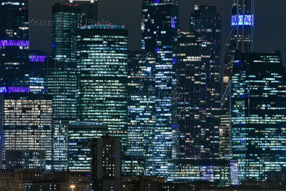 Виды вечерней Москвы. Жанровая фотография. Светящиеся окна в башнях-небоскребах Московского…