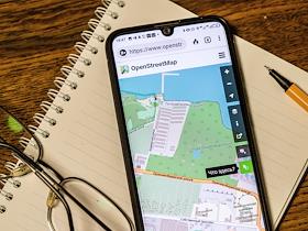Жанровая фотография. Экран смартфона с изображением сайта OpenStreetmap.com, на котором указан…