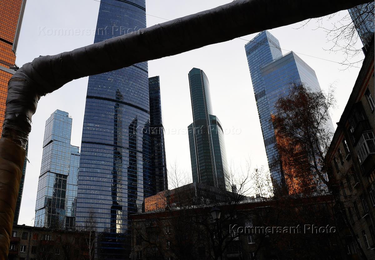 Виды Москвы. Жанровая фотография. Пятиэтажные дома на фоне Московского международного делового…