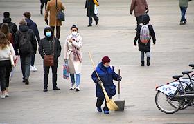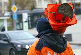 Виды Москвы. Жанровая фотография. Сотрудник коммунальных служб с интрументами возле станции метро…