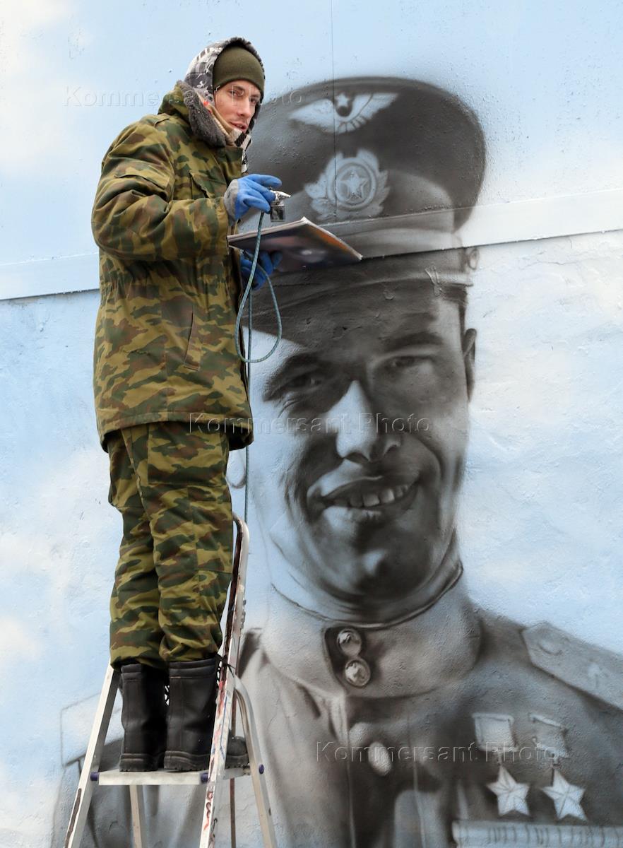 Виды Саратова. Граффити на набережной города, посвященные летчикам-истребителям Героям Советского…