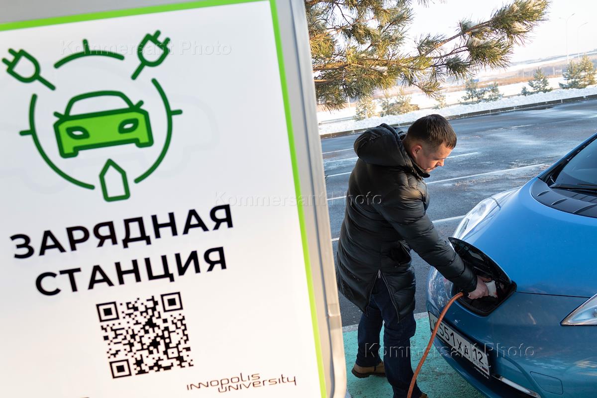 Жанровая фотография. Зарядка электромобиля на зарядной станции.