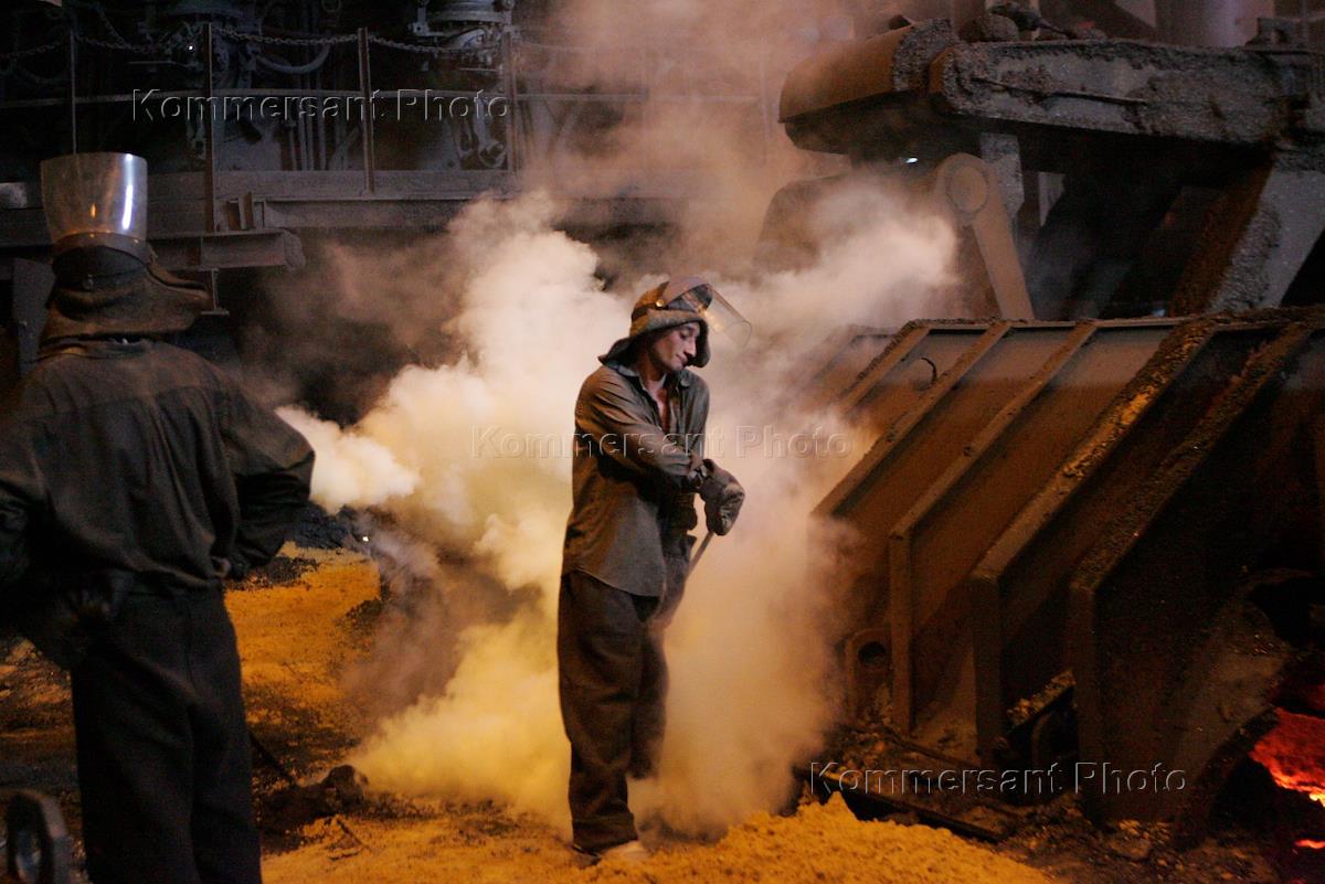 Рабочий в цеху Запорожского металлургического комбината "Запорожсталь".