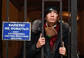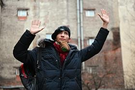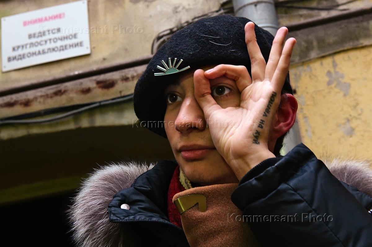 Бывший студент РУДН, активист Павел Крисевич на фоне здания ФСБ.