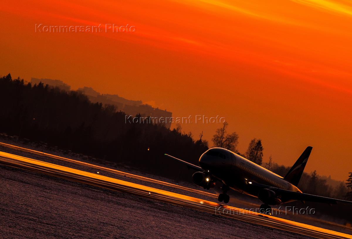 Жанровая фотография. Самолет авиакомпании "Аэрофлот" над взлетно-посадочной полосой Международного…