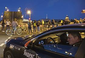 Жанровая фотография. Фотозабег "Белые ночи". Водитель "Яндекс. Такси" у разведенного маста.