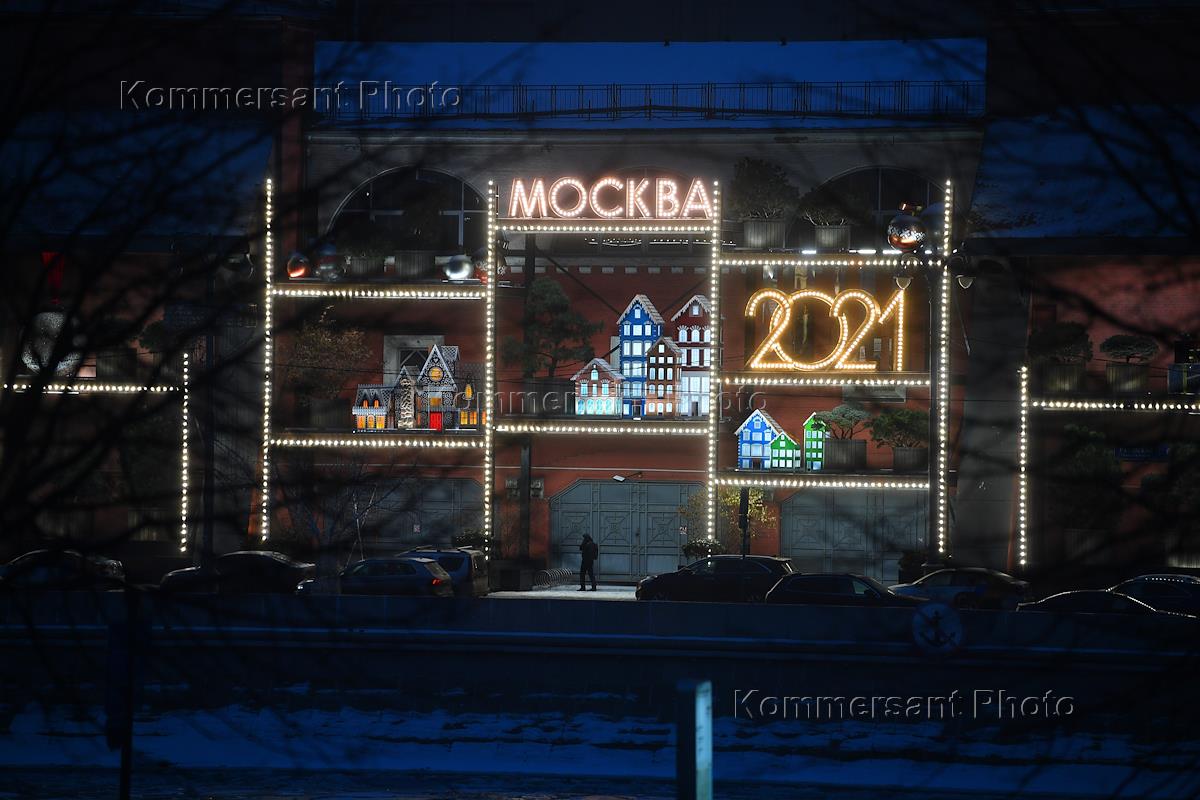 Виды Москвы. Жанровая фотография. Новогоднее оформление города. Светящяяся новогодняя декорация на…