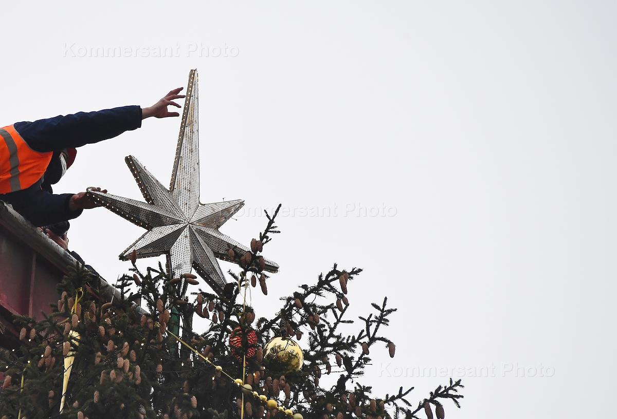 Украшение главной новогодней елки страны на Соборной площади Московского Кремля.