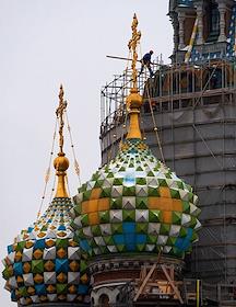Виды Санкт-Петербурга. Жанровая фотография. Разборка строительных лесов на храме Спааса на Крови.