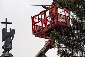 Жанровая фотография. Работы по установке новогодней елки на Дворцовой площади.