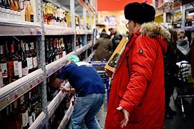 Виды Кемерово. Жанровая фотография. Покупатели во время предновогодних покупок в винном отделе…