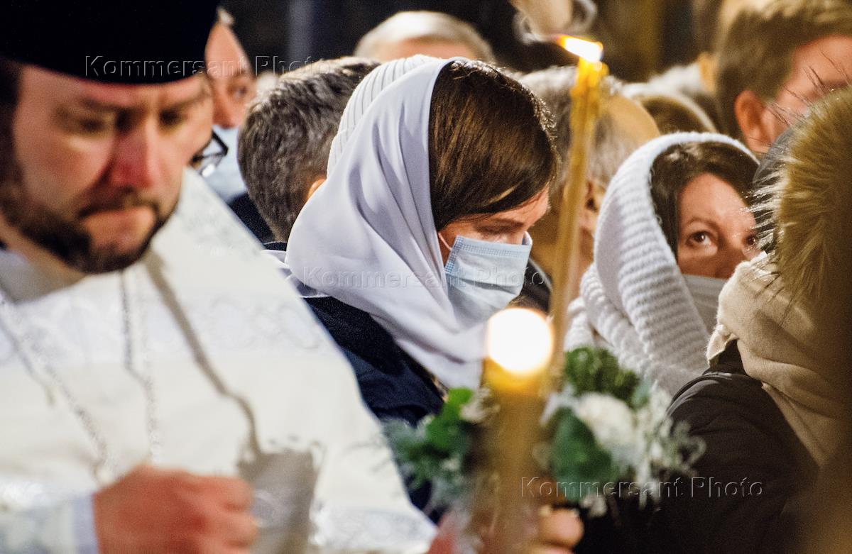 Рождественское богослужение в Казанском кафедральном соборе. Верующие во время богослужения.