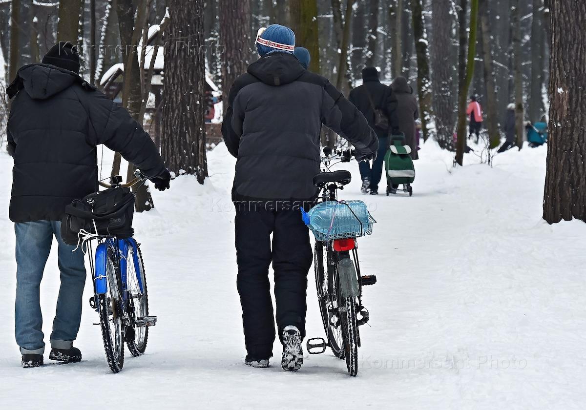 Жанровая фотография. Отдыхающие в парке Покровское-Стрешнево на велосипедах.