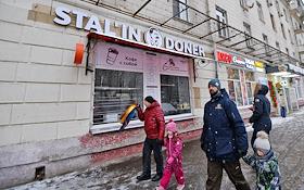 Кафе у станции метро "Войковская" Stal'in Doner, где продается шаурма "от Сталина". Жанровая…