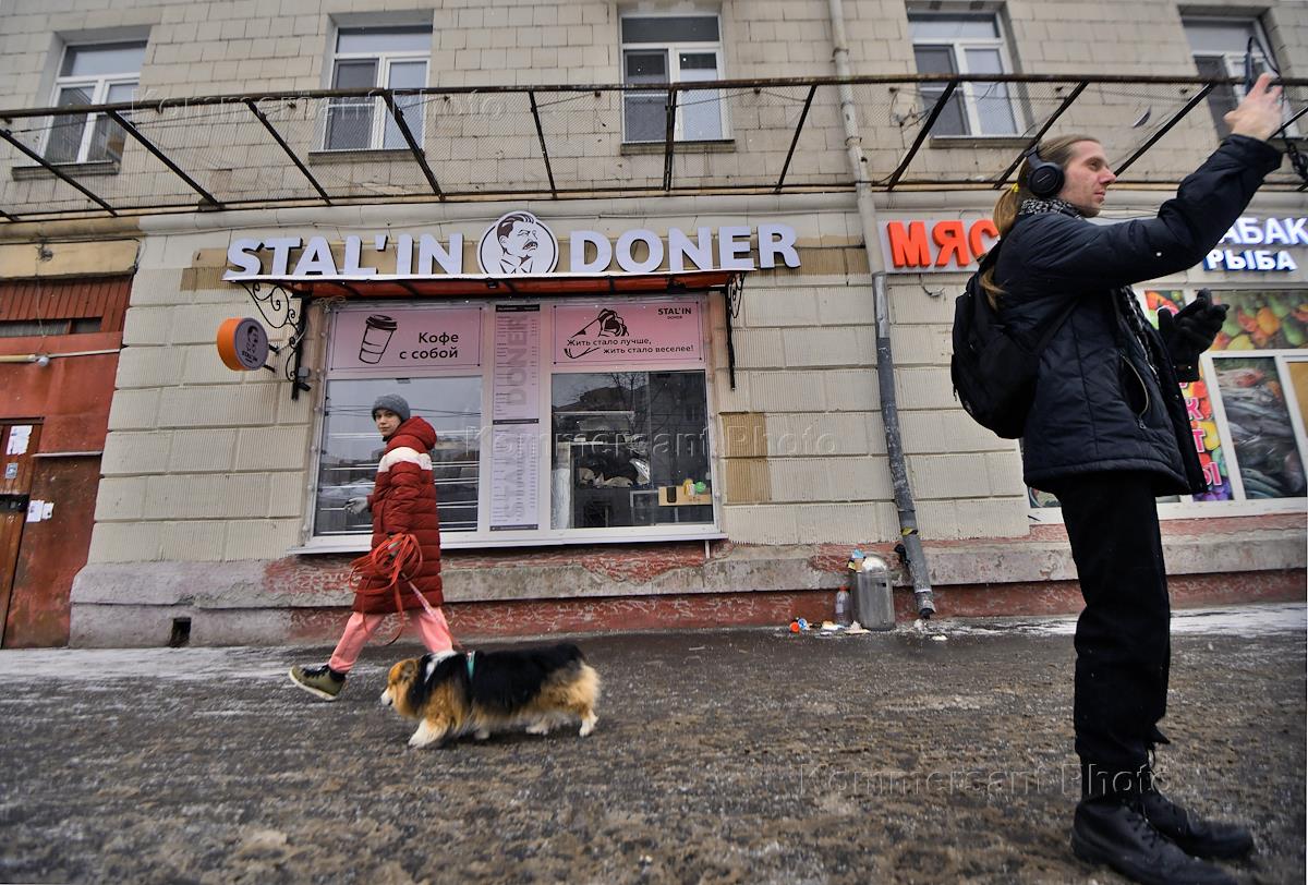 Кафе у станции метро "Войковская" Stal'in Doner, где продается шаурма "от Сталина". Жанровая…