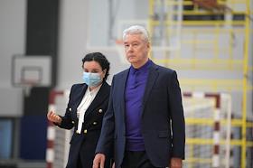 Мэр Москвы Сергей Собянин во время осмотра итогов строительства школы на 1900 мест.