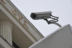 Виды Москвы. Жанровая фотография. Камера наружного видеонаблюдения у здания Московского городского…