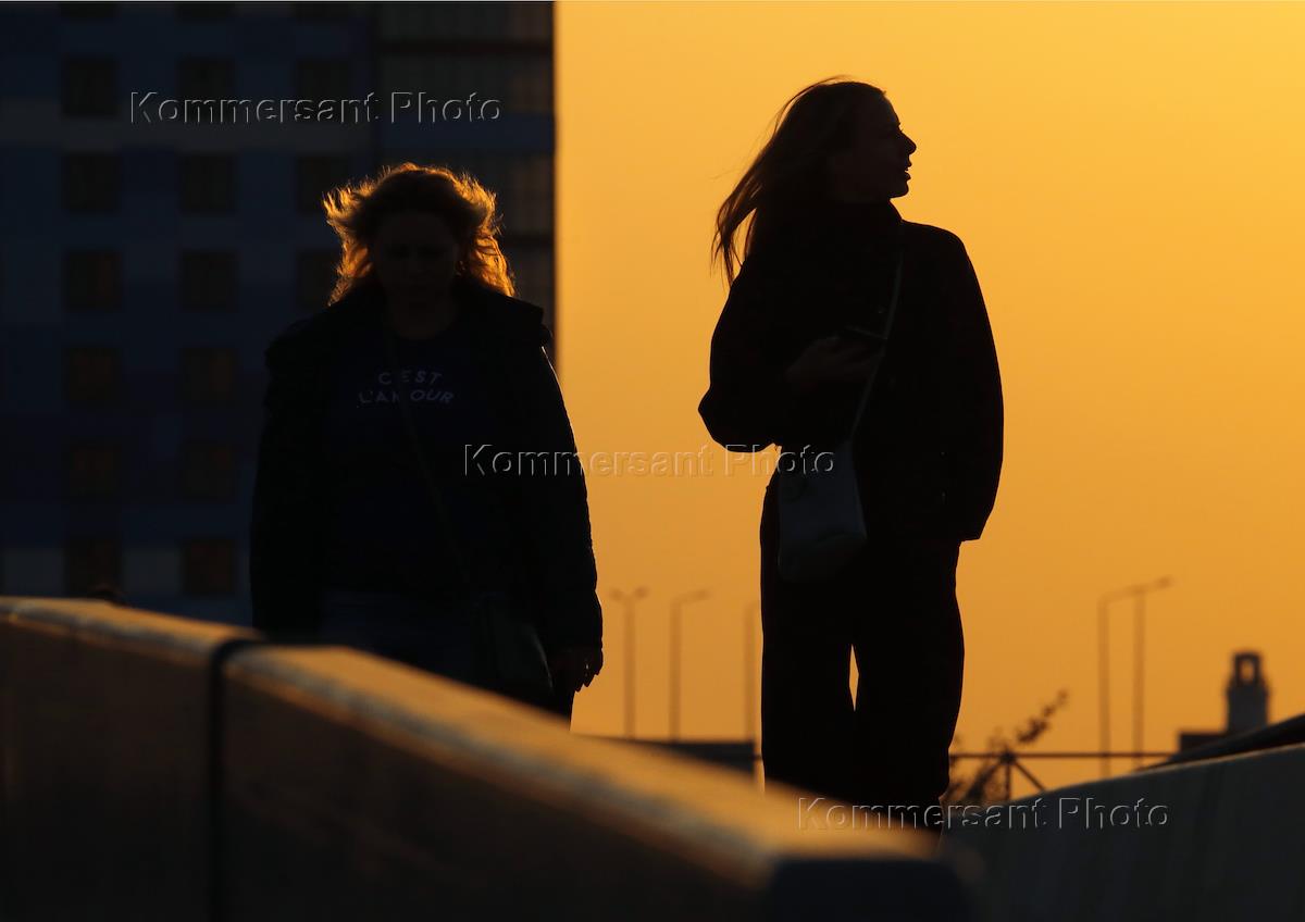 Жанровая съемка. Городские сюжеты. Люди на улицах на закате.