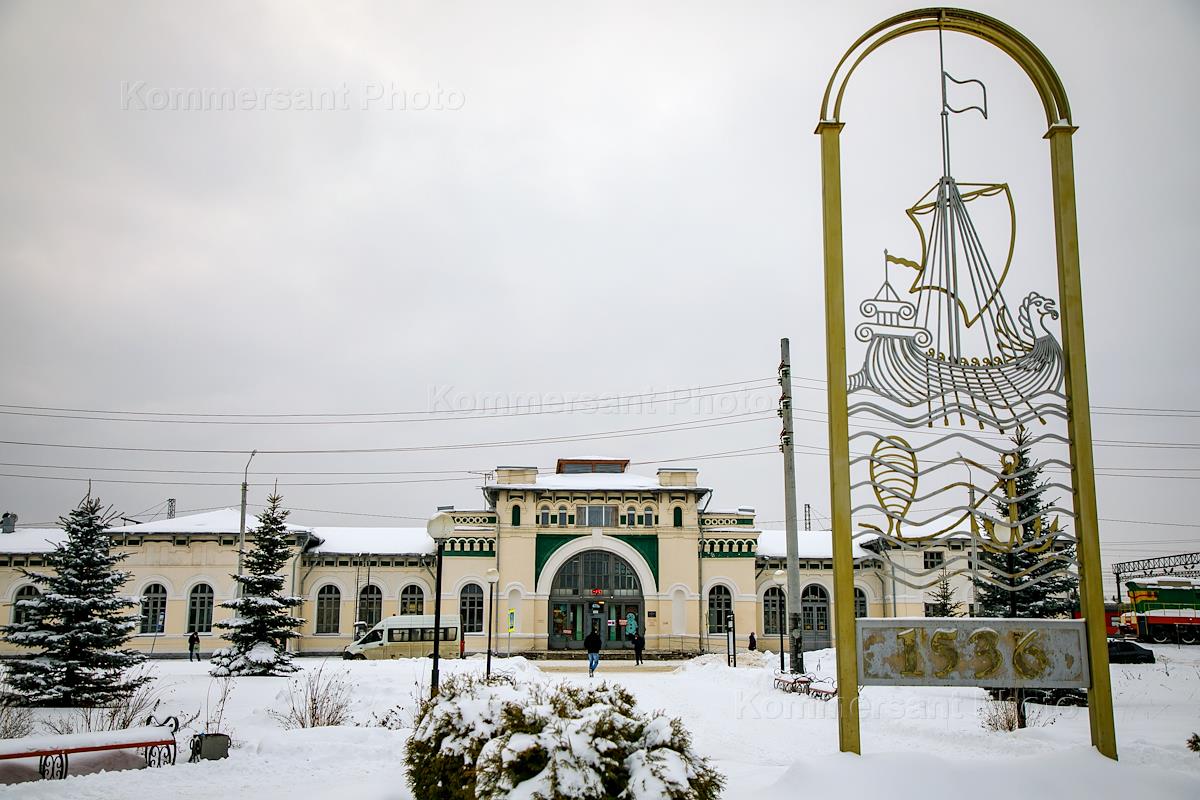Виды города Буй. Жанровая фотография. Здание железнодорожного вокзала на Привокзальной площади.