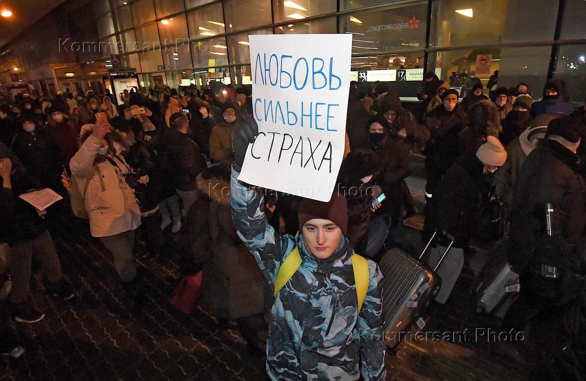 Сторонники политика Алексея Навального во время ожидания его прилета в аэропорту Внуково.