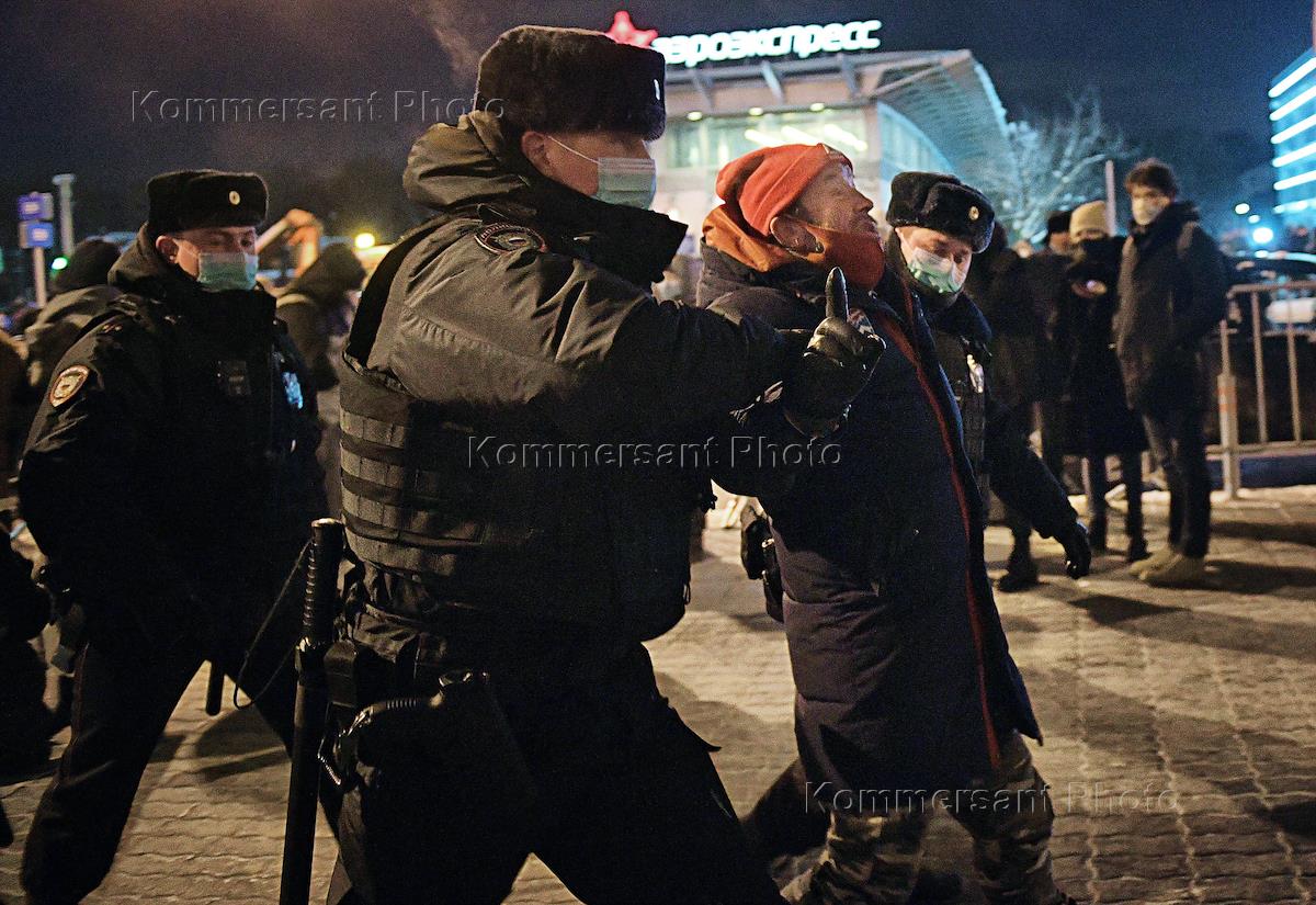 Сотрудники полиции во время задержания сторонника политика Алексея Навального в аэропорту Внуково.