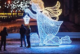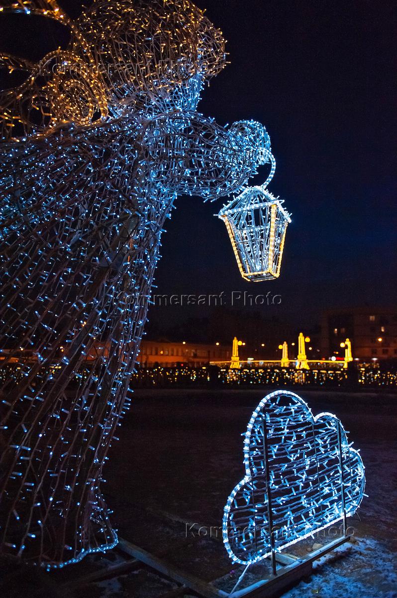 Виды новогоднего Санкт-Петербурга. Жанровая фотография. Семимостье. Фигура новогоднего ангела на…