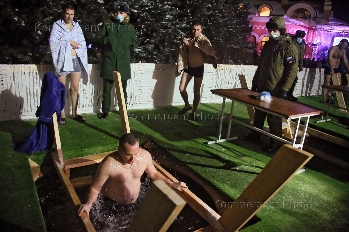 Праздник Крещения Господня. Военнослужащие Ростовского гарнизона во время крещенских купаний в…