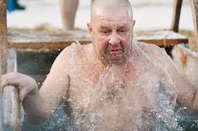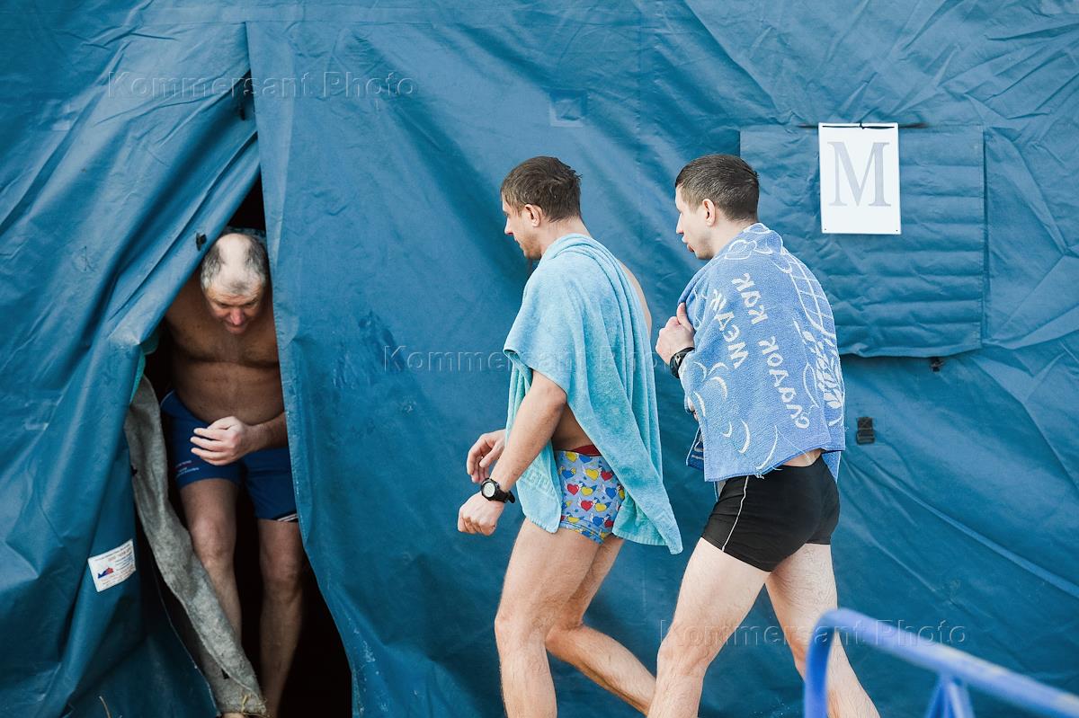 Крещенские купания в Новосибирске в купели у Дмитровского моста на реке Обь.