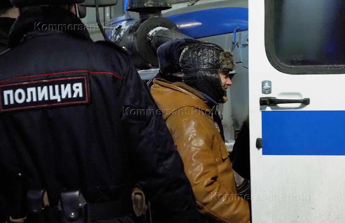 Общество Акция в поддержку оппозиционера Алексея Навального у Гостиного Двора. Алексей Навальный был задержан вечером 17 января на паспортном контроле в аэропорту Шереметьево после возвращения в Россию. Химкинский суд Москвы оставил блогера Алексея Навального под стражей на 30 суток, до 15 февраля. Сотрудники полиции во время задержания участников акции.