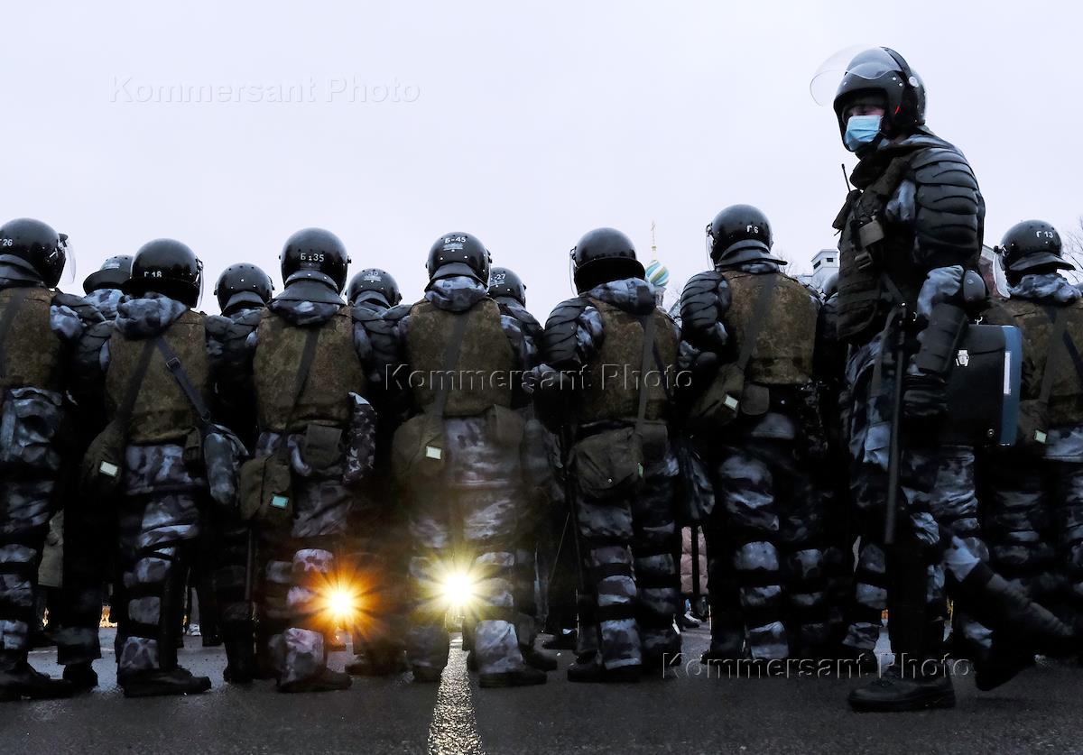 Митинг в поддержку политика Алексея Навального на Сенатской площади. Сотрудники полиции во время…