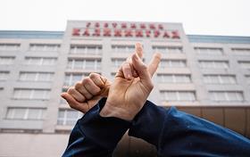 Митинг в поддержку политика Алексея Навального у гостиницы "Калининград". Руки участника митинга.