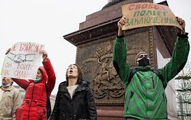 Митинг в поддержку политика Алексея Навального у гостиницы "Калининград". Участники во время митинга.
