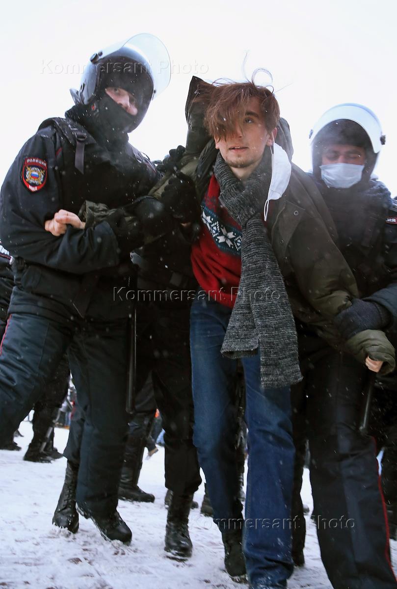 Шествие и митинг в поддержку политика Алексея Навального. Сотрудники полиции во время задержания…