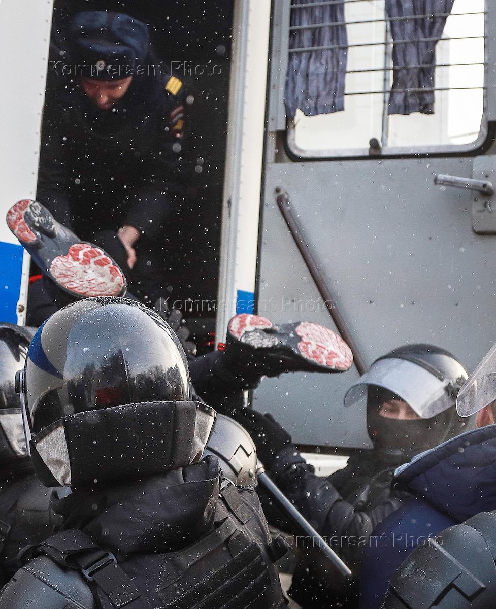 Акция в поддержку задержанного оппозиционера Алексея Навального на площади Ленина. Сотрудники…