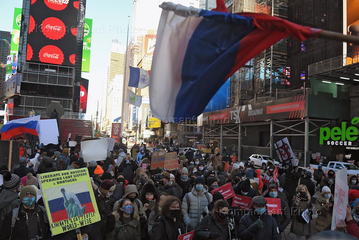 Акция в поддержку задержанного оппозиционера Алексея Навального. Участники на площади Таймс-сквер во…